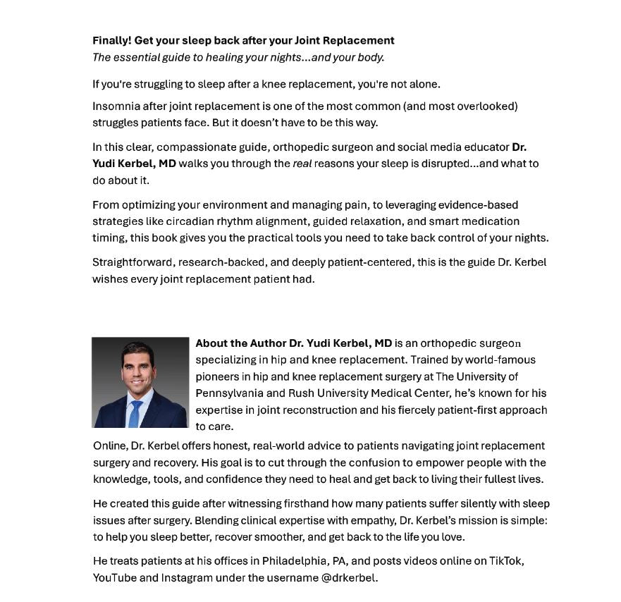 In this clear, compassionate guide, orthopedic surgeon and social media educator Dr. Yudi Kerbel, MD walks you through the real reasons your sleep is disrupted...and what to do about it.